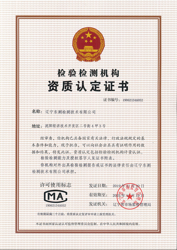 遼寧東測(cè)檢測(cè)技術(shù)有限公司成立于2007年6月21日,專(zhuān)注于為客戶(hù)提供計(jì)量、檢測(cè)以及技術(shù)咨詢(xún)與培訓(xùn)的第三方計(jì)量檢測(cè)機(jī)構(gòu)。遼寧東測(cè)檢測(cè)技術(shù)有限公司通過(guò)了中國(guó)合格評(píng)定國(guó)家認(rèn)可委員會(huì)認(rèn)可(CNAS),獲得檢驗(yàn)檢測(cè)機(jī)構(gòu)資質(zhì)認(rèn)定(CMA),憑借著高效的服務(wù)網(wǎng)絡(luò)、雄厚的技術(shù)實(shí)力以及全面的業(yè)務(wù)范圍,本著“科學(xué)、公正、準(zhǔn)確、真誠(chéng)”的質(zhì)量方針,為社會(huì)提供優(yōu)質(zhì)計(jì)量檢測(cè)服務(wù),打造國(guó)內(nèi)具有價(jià)值的計(jì)量技術(shù)機(jī)構(gòu)。